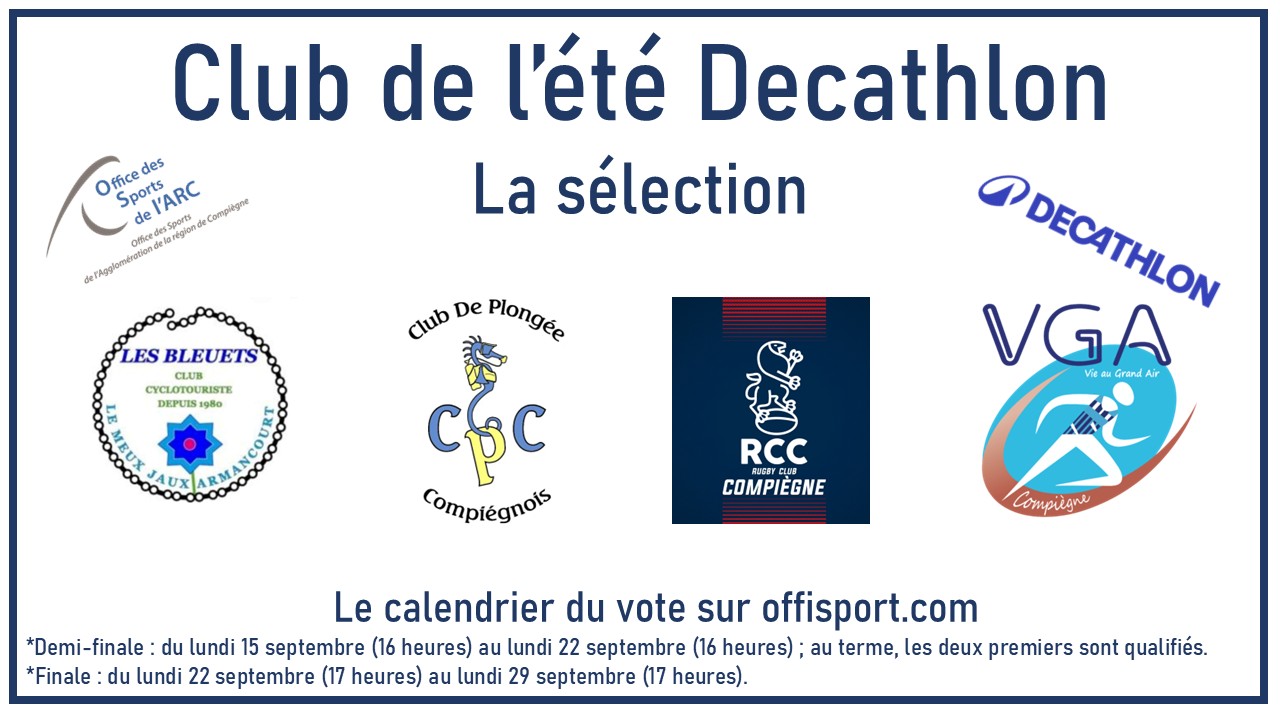 Les trois premiers de cette élection seront récompensés en bons d’achats offerts par Decathlon Compiègne-Jaux, partenaire Privilège du Club du mois.