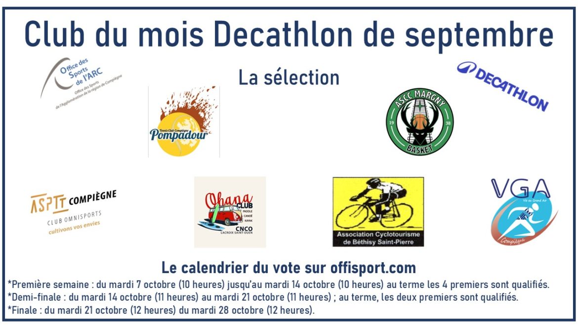 Découvrez les clubs sélectionnés pour participer à l’élection du Club du mois Decathlon de septembre.
