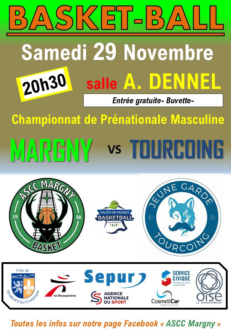L’ASCC Margny basket reçoit Tourcoing samedi 29 novembre à 20h30, salle Aimé Dennel à Margny-lès-Compiègne
