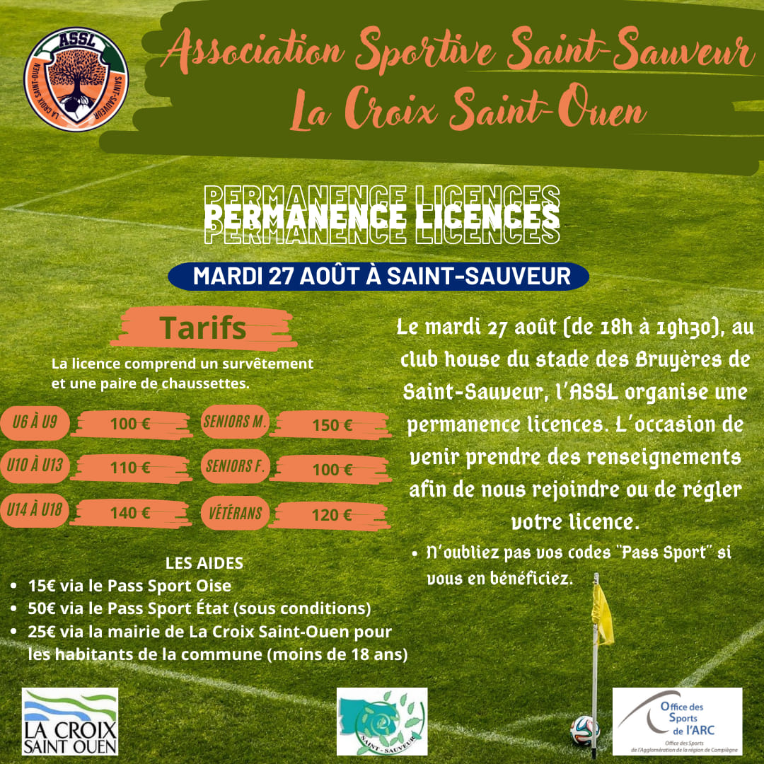 L’ASSL tient une permanence licences mardi 27 août de 18h00 à 19h30, stade des bruyères à Saint-Sauveur