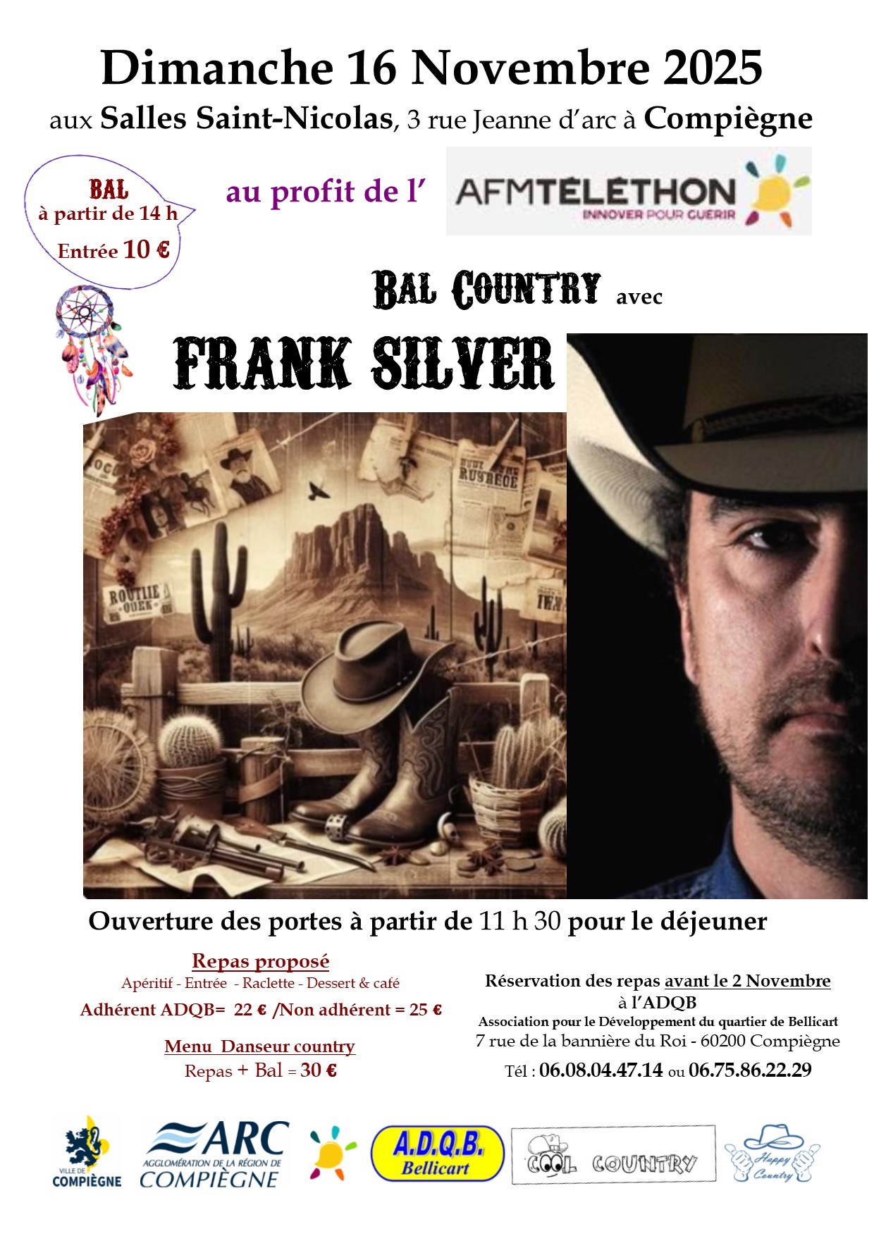 L’ADQB organise un bal country au profit du Téléthon dimanche 16 novembre partir de 14 heures, salles Saint-Nicolas à Compiègne