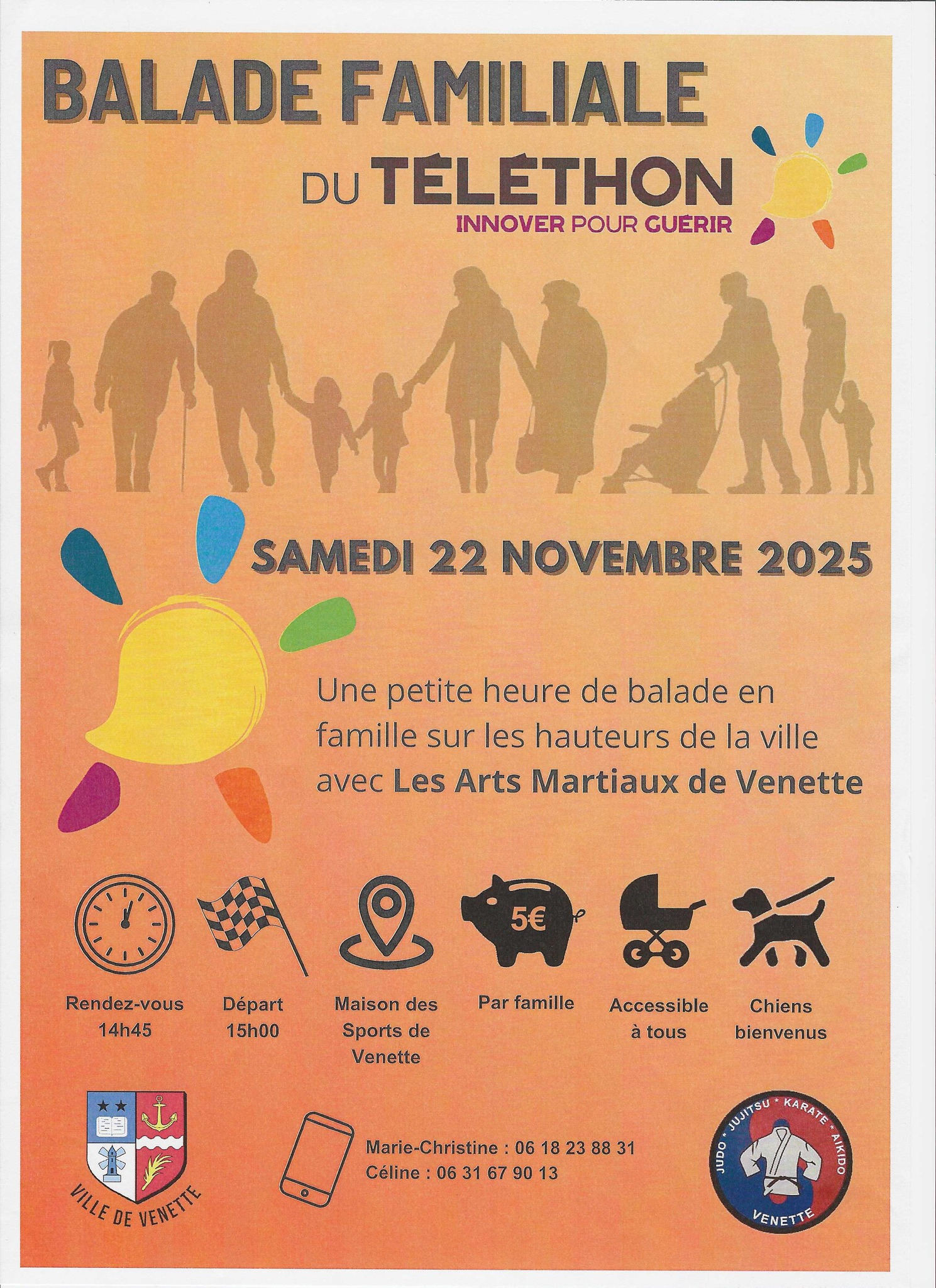 Dans le cadre du Téléthon, le Judo jujitsu Venette organise une balade familiale samedi 22 novembre. Rendez-vous à 14h45 à la maison des sports de Venette.