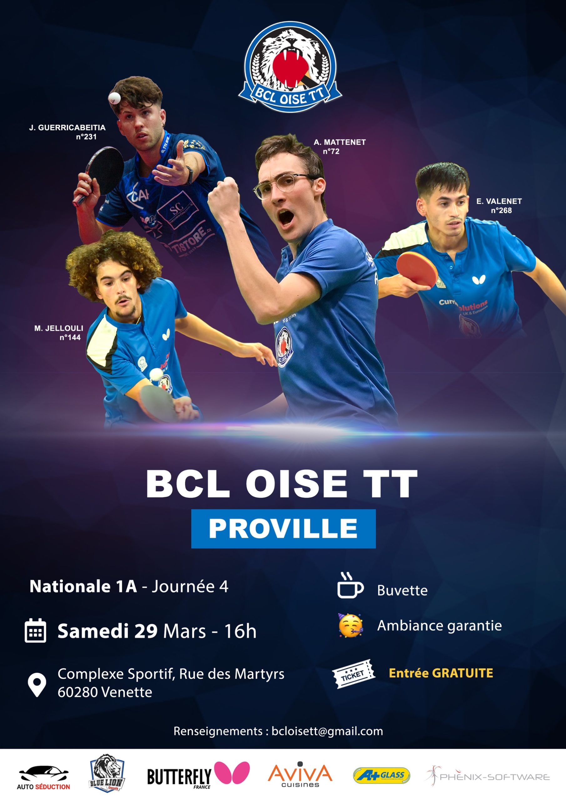 Le BCL Oise TT reçoit Proville samedi 29 mars à 16 heures, maison des sports de Venette.