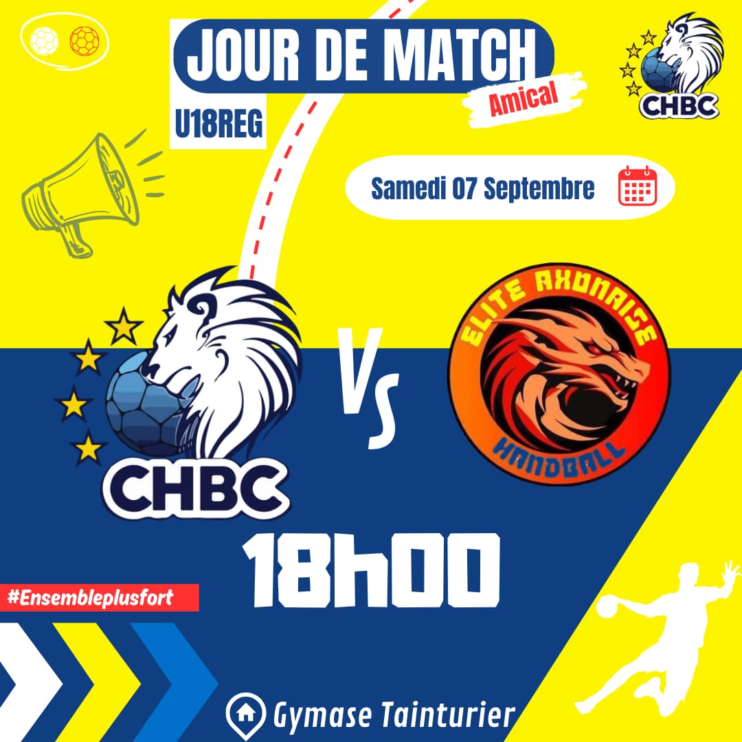 Le CHBC reçoit l’Elite axonaise handball U18R samedi 7 septembre à 18 heures au gymnase Tainturier à Compiègne