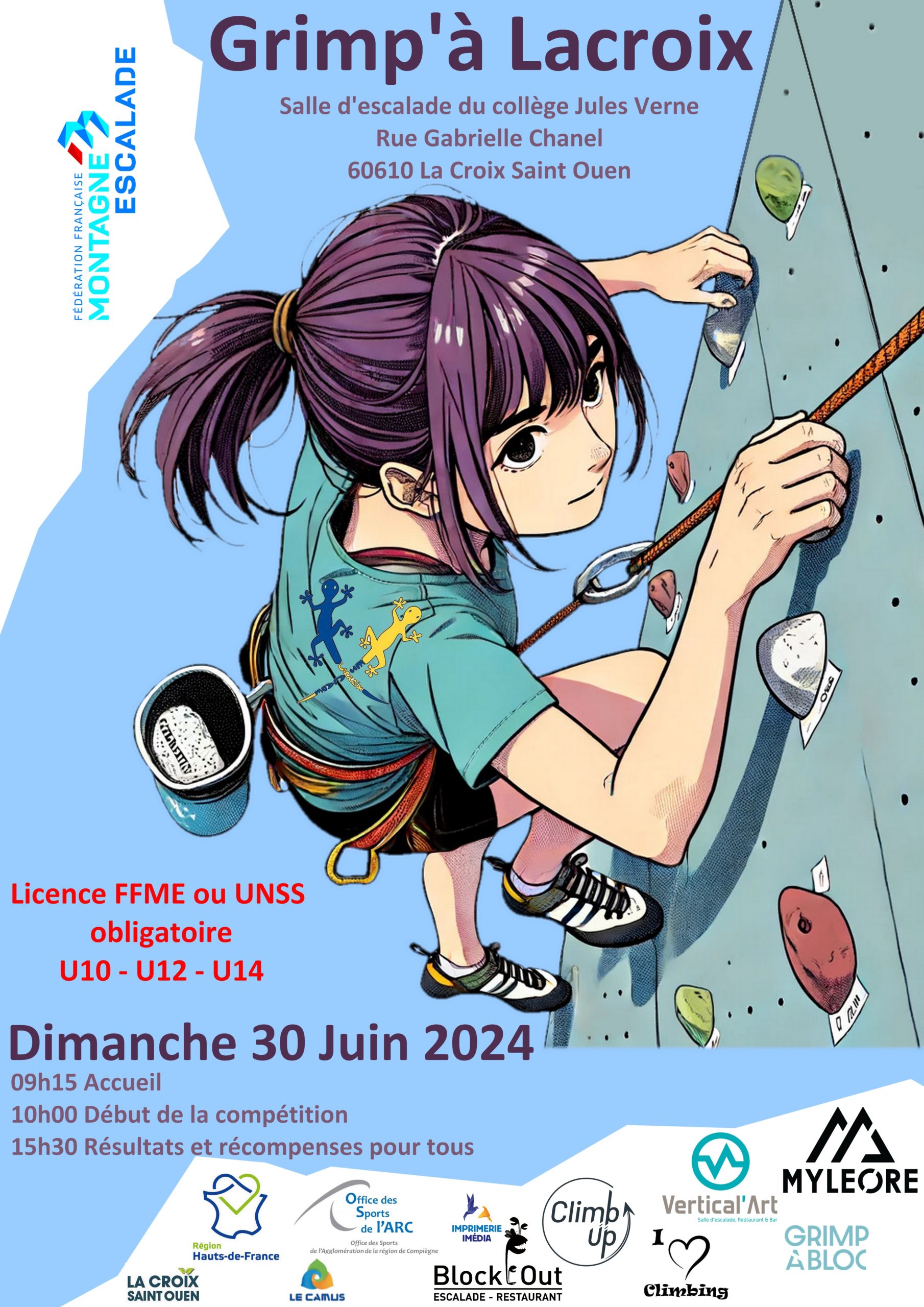 Lacroix escalade organise une compétition dimanche 30 juin à partir de 10 heures, salle d’escalede du collège Jules Vernes, rue Gabrielle Chanel à La Croix Saint-Ouen