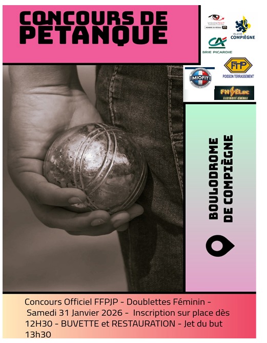 Compiègne pétanque club organise un concours de pétanque doublettes féminin samedi 31 janvier à partir de 13h30, boulodrome de Compiègne.