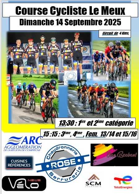 Courses de vélos organisées par le Compiègne sports cyclistes dimanche 14 septembre à partir de 13h30, au Meux