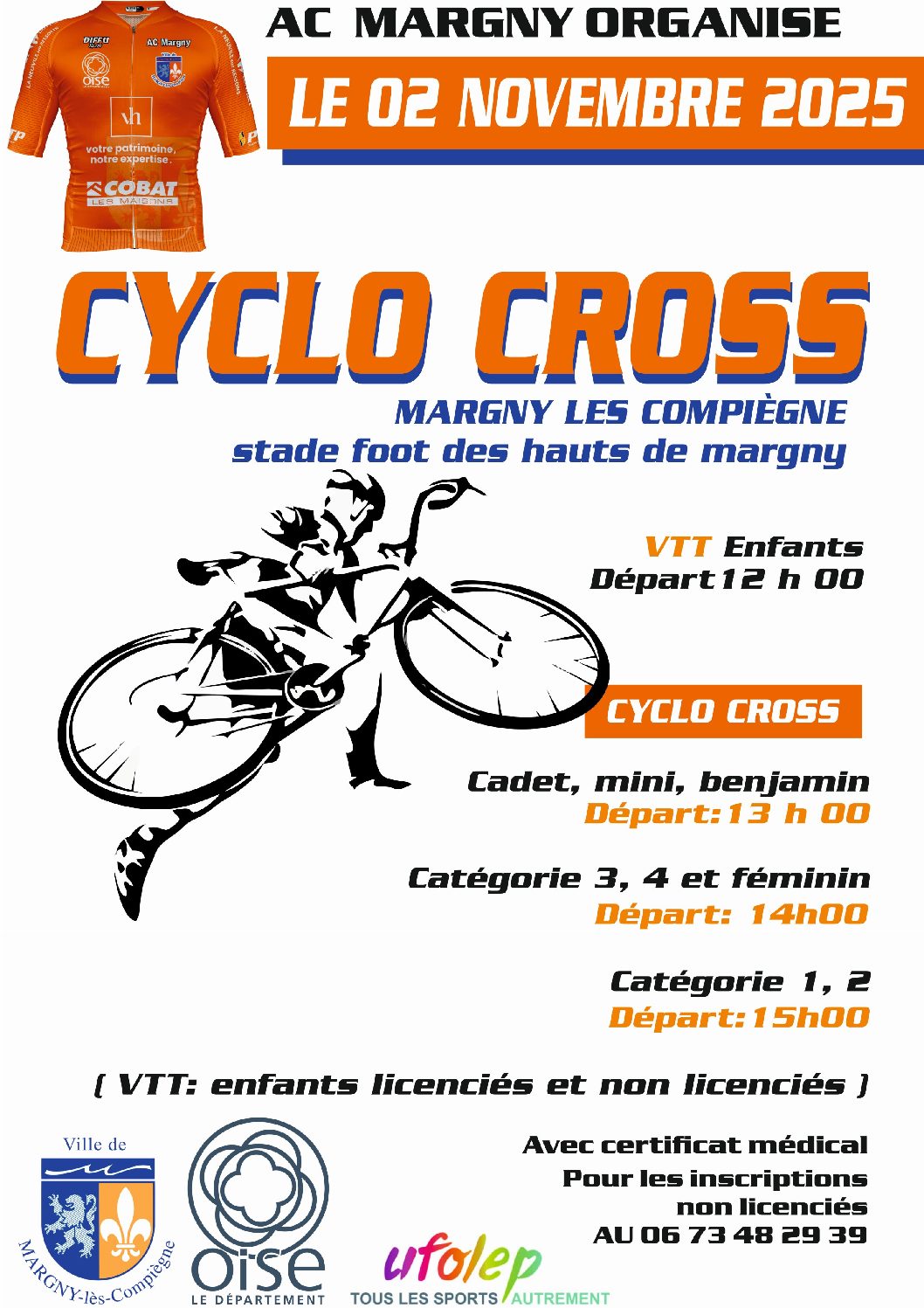 L’AC Margny organise un cyclo cross dimanche 2 novembre à partir de 12 heures. Rendez-vous au stade de foot des hauts de Margny.