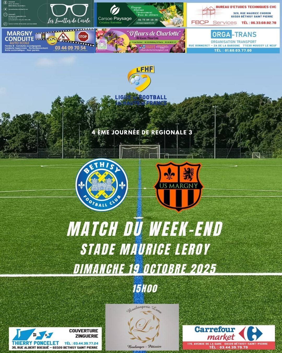Le FC Béthisy reçoit l’US Margny dimanche 19 octobre à 15 heures, stade Maurice Leroy à Béthisy-Saint-Pierre.