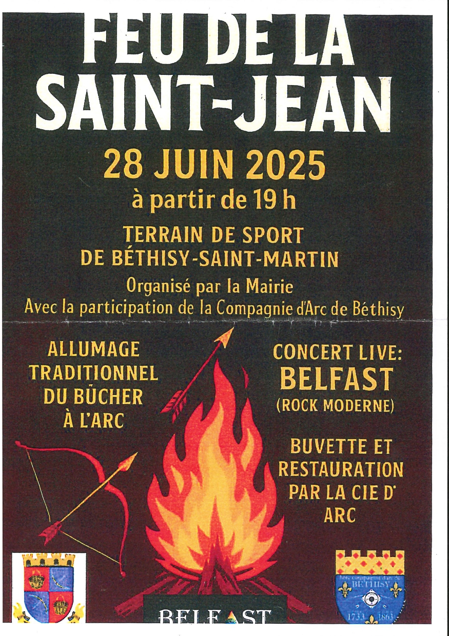 Feu de la Saint-Jean samedi 28 juin à partir de 19 heures au terrain des sports de Béthisy-Saint-Martin