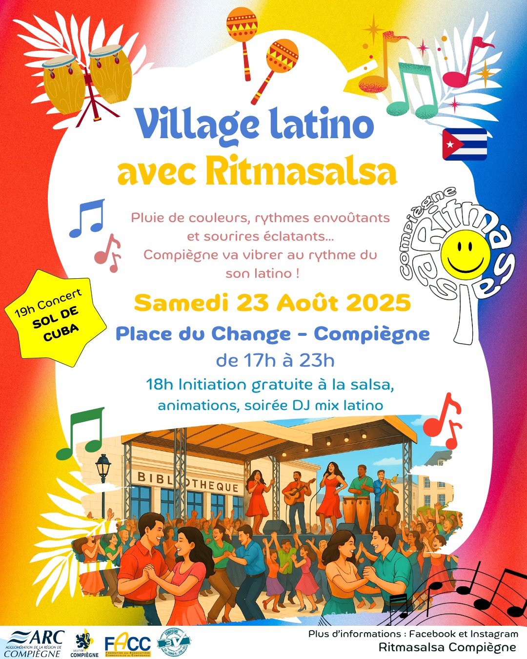 Salsa et initiation gratuite à la salsa avec Ritmasalsa samedi 23 août de 17 heures à 23 heures, place du change à Compiègne