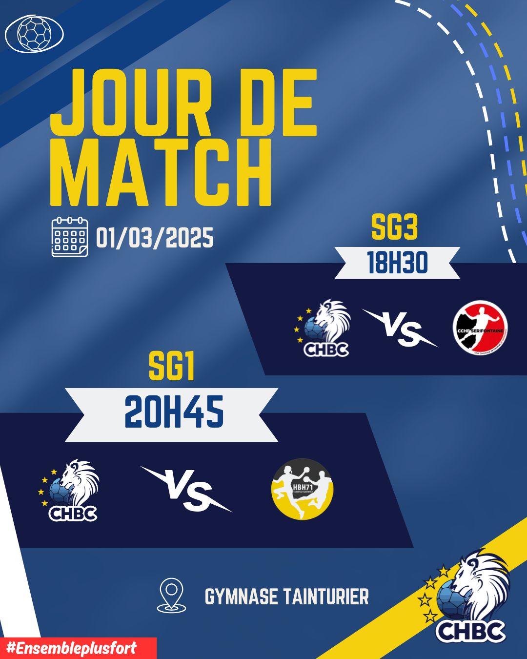 Jour de matchs au CHBC samedi 1er mars à partir de 18h30, gymnase Tainturier à Compiègne