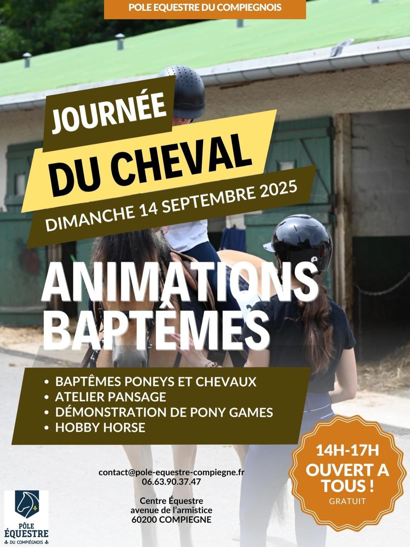 Journée du cheval avec le Pôle équestre du compiégnois dimanche 14 septembre de 14 heures à 17 heures, au centre équestre, avenue de l’armistice à Compiègne