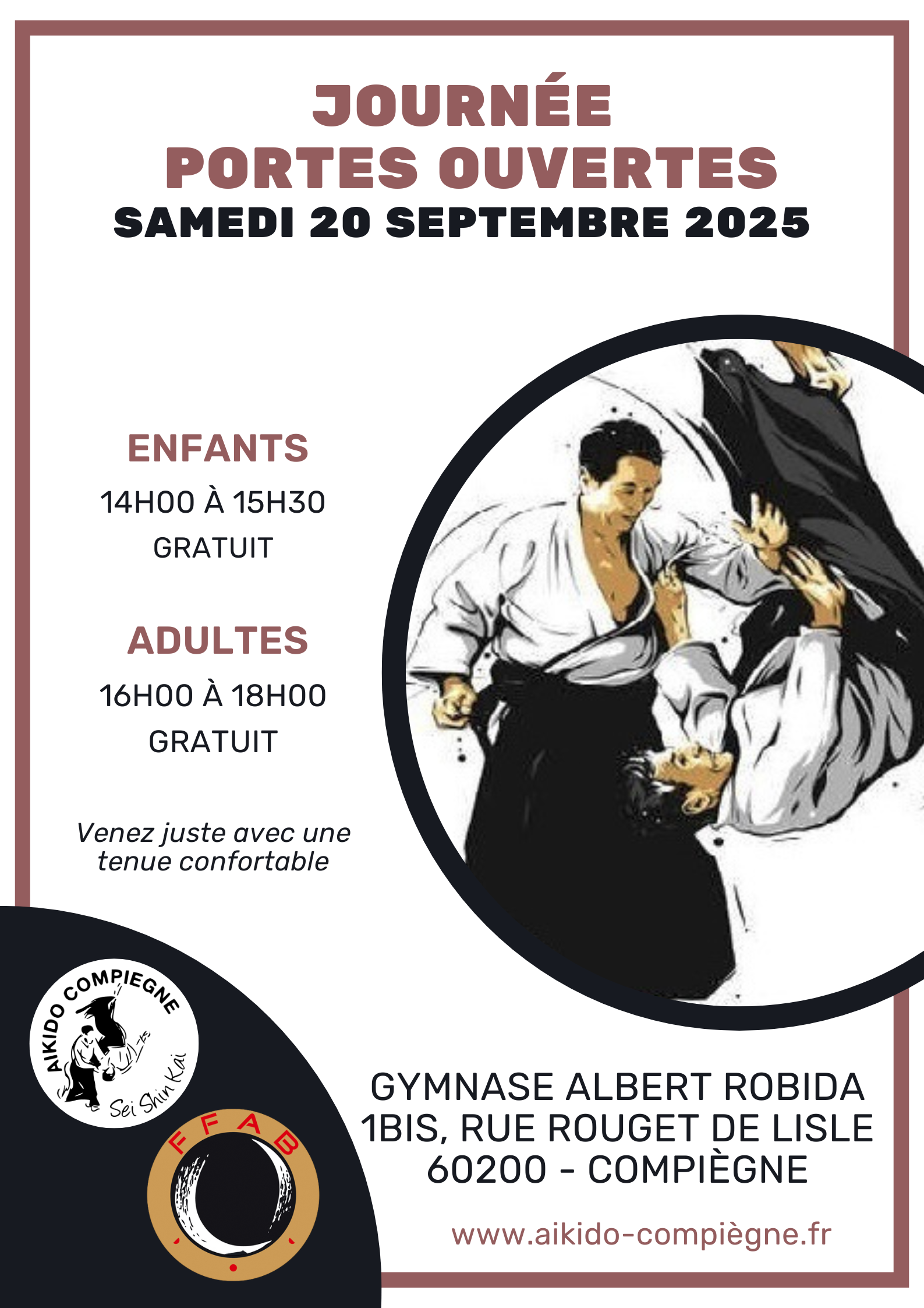 Journée portes ouvertes à l’Aikido Compiègne samedi 20 septembre de 14 heures à 18 heures, gymnase Robida à Compiègne
