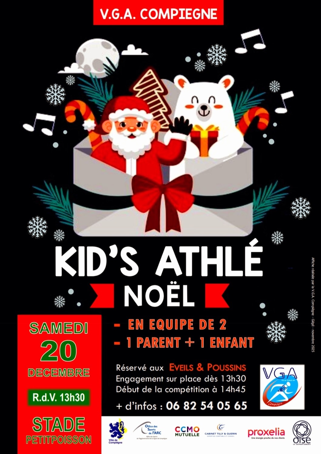 La VGA Compiègne organise un kid’s athé de Noël spécial Eveil et poussins, samedi 20 décembre à 13h30, stade Paul-Petitpoisson.