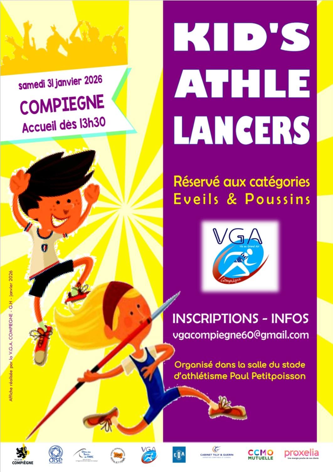 La VGA Compiègne organise un Kid’s athlé lancers pour les Eveils et Poussins, samedi 31 janvier à partir de 13h30, stade Paul-Petitpoisson à Compiègne