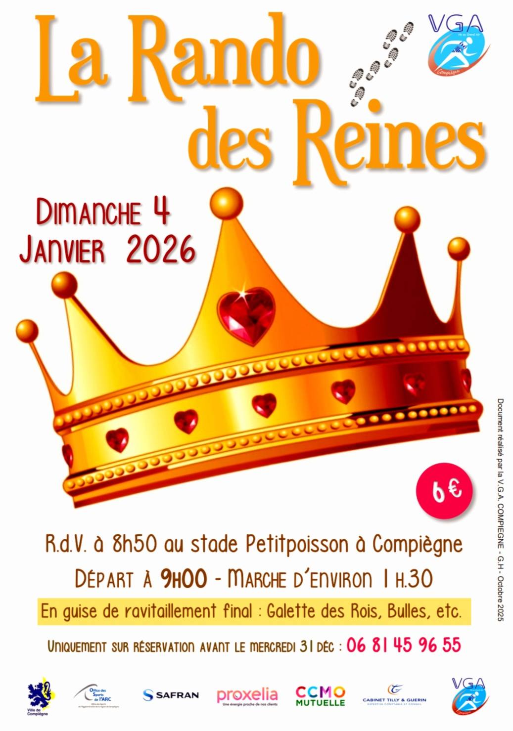 La VGA Compiègne organise sa traditionnelle rando ders reines dimanche 4 janvier. Rendez-vous à 8h50 au stade Paul-Petitpoisson à Compiègne