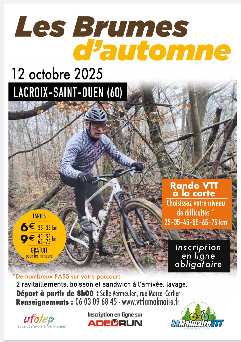 La Malmaire VTT organise les Brumes d’automne dimanche 12 octobre, à parir de 8 heures. Rendez-vous salle Vermeulen, rue Marcel Carlier à La Croix Saint-Ouen