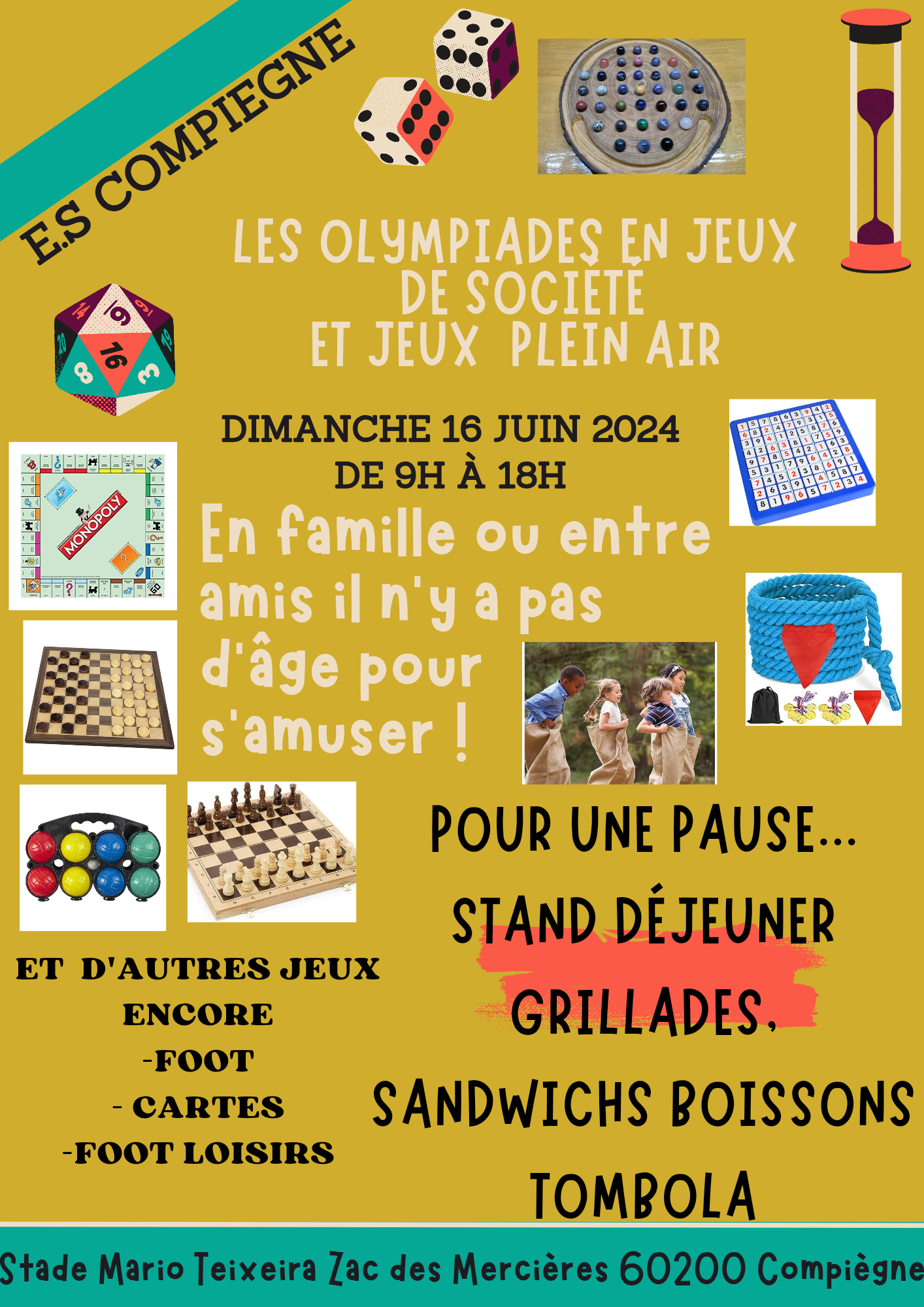 L’Entente sportive Compiègne organise les olympiades des jeux de société et jeux de plein air dimanche 16 juin de 9h00 à 18h00, stade Mario-Teixeira, ZAC de Mercières à Compiègne