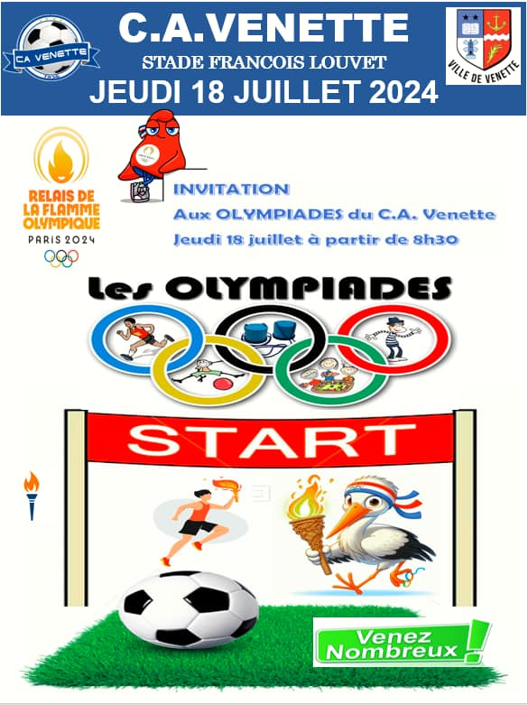 Le CA Venette organise une journée Olympiades, jeudi 18 juillet, à partir de 8h30, stade François Louvet à Venette
