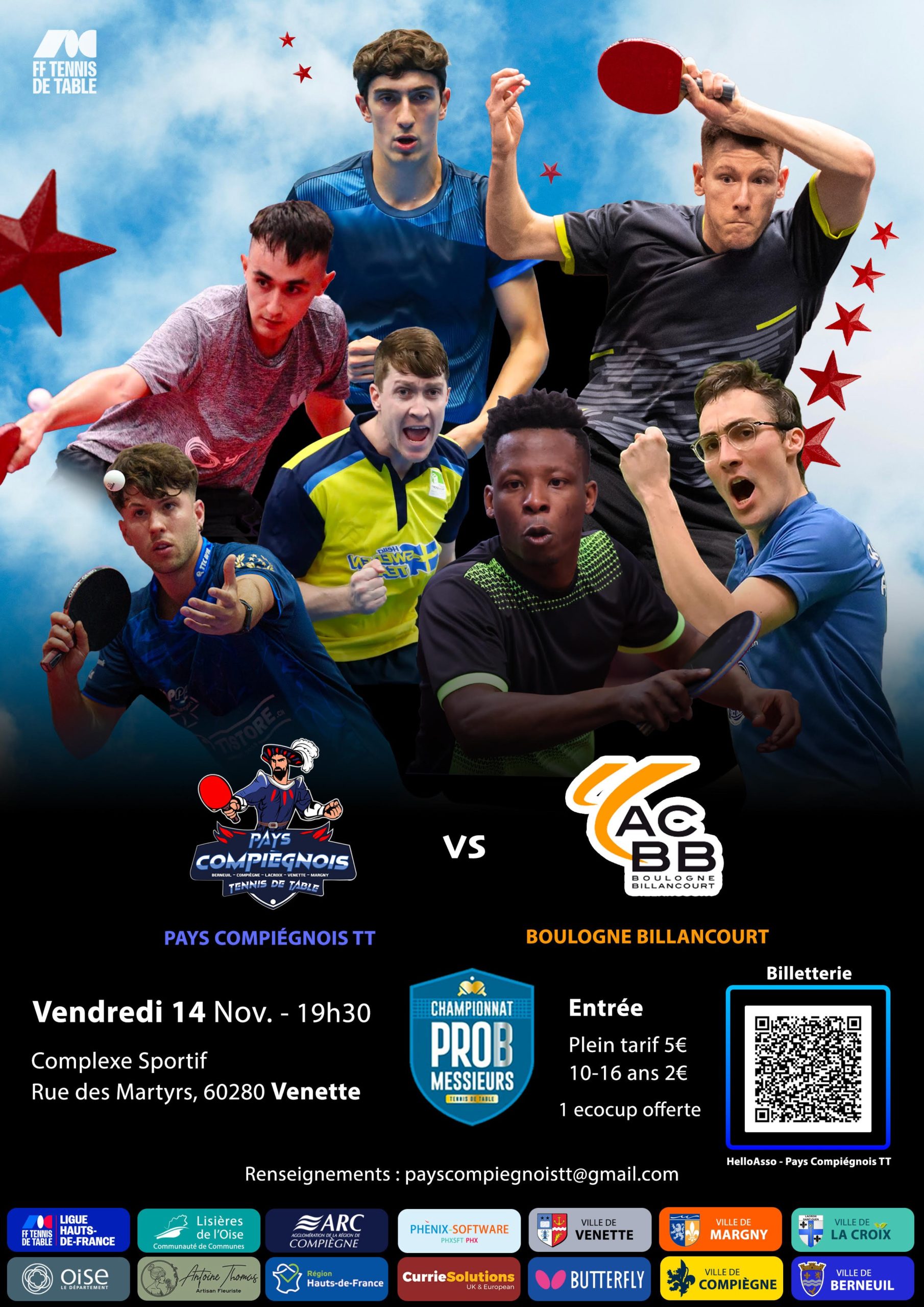 Le Pays compiégnois TT reçoit l’AC Boulogne Billancourt vendredi 14 novembre à 19h30, à la maison des sports de Venette