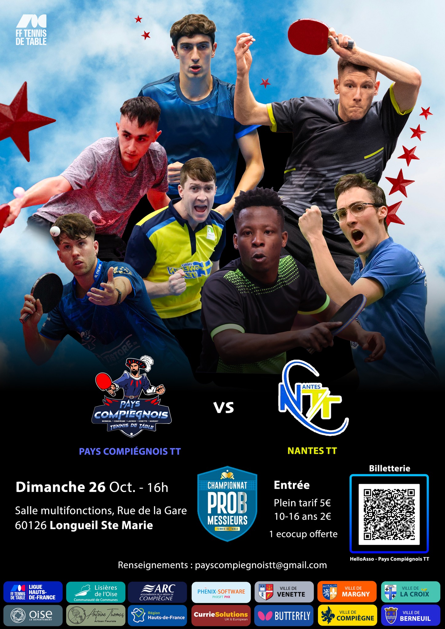 Le Pays compiégnois TT reçoit Nantes TT dimanche 26 octobre à 16 heures, salle multifonctions, rue de la gare à Longueil Sainte-Marie.