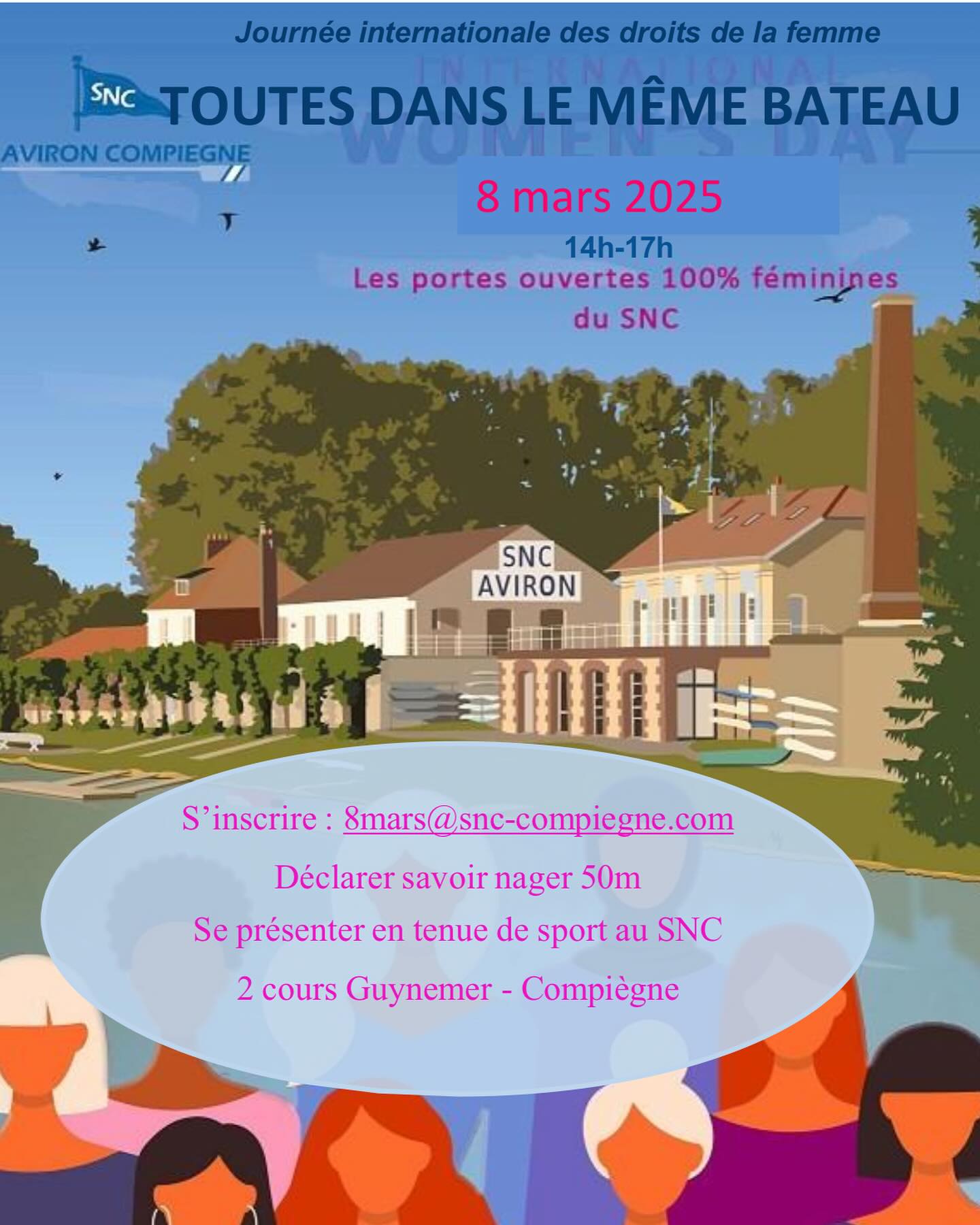 Portes ouvertes 100% féminines au Sport nautique compiégnois samedi 8 mars de 14h00 à 17h00, 2 cours Guynemer à Compiègne