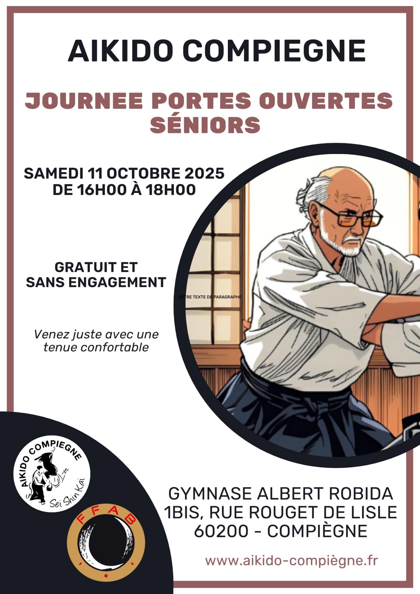 L’Aïkido Compiègne organise une journée portes ouvertes Séniors samedi 11 octobre de 16 heures à 18 heures, gymnase Robida à Compiègne