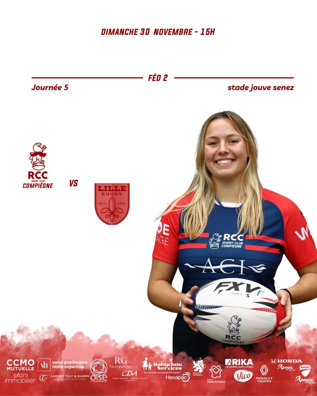 Le RCC reçoit Lille rugby dimanche 30 novembre à 15 heures, stade Jouve-Senez à Compiègne