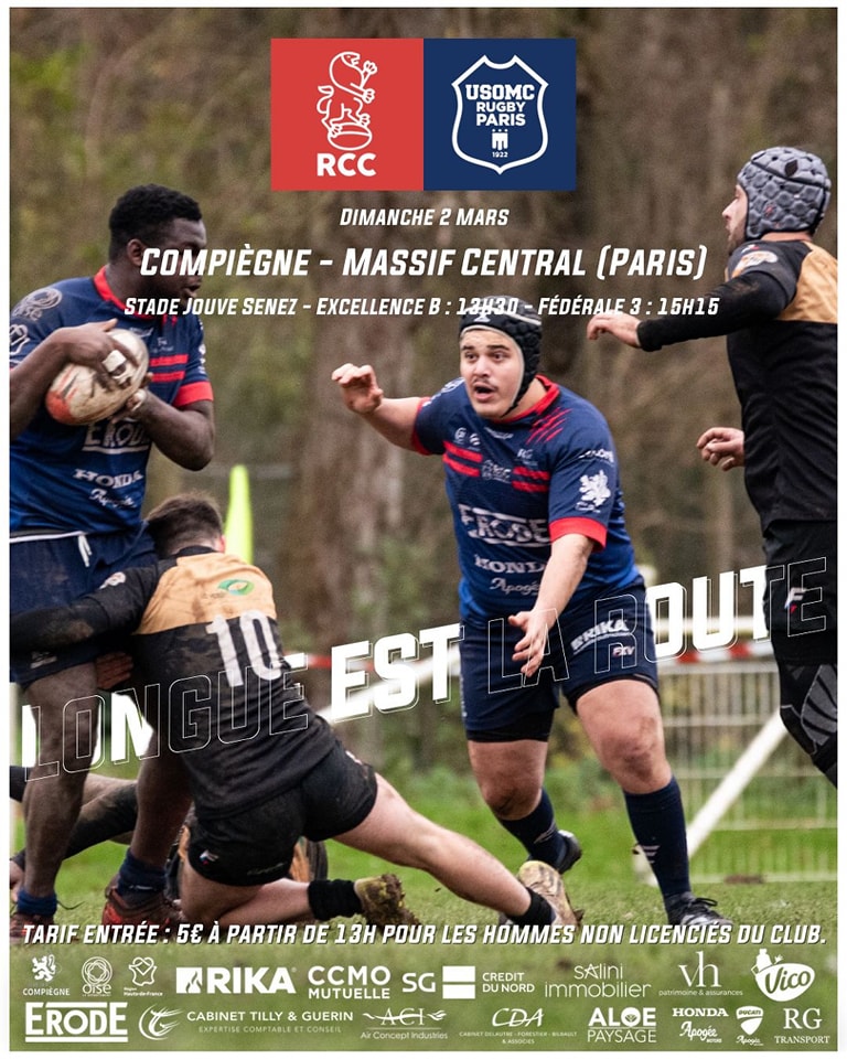 Le RCC reçoit Massif central Paris dimanche 2 mars à 15h15, stade Jouve-Senez à Compiègne
