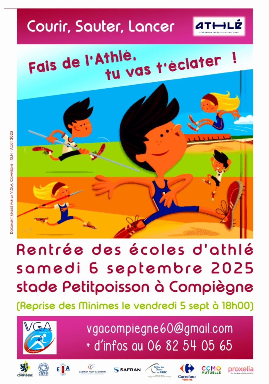 Rentrée des écoles d’athlé avec la VGA Compiègne samedi 6 septembre à partir de 113h45, stade Paul-Petitpoisson à Compiègne