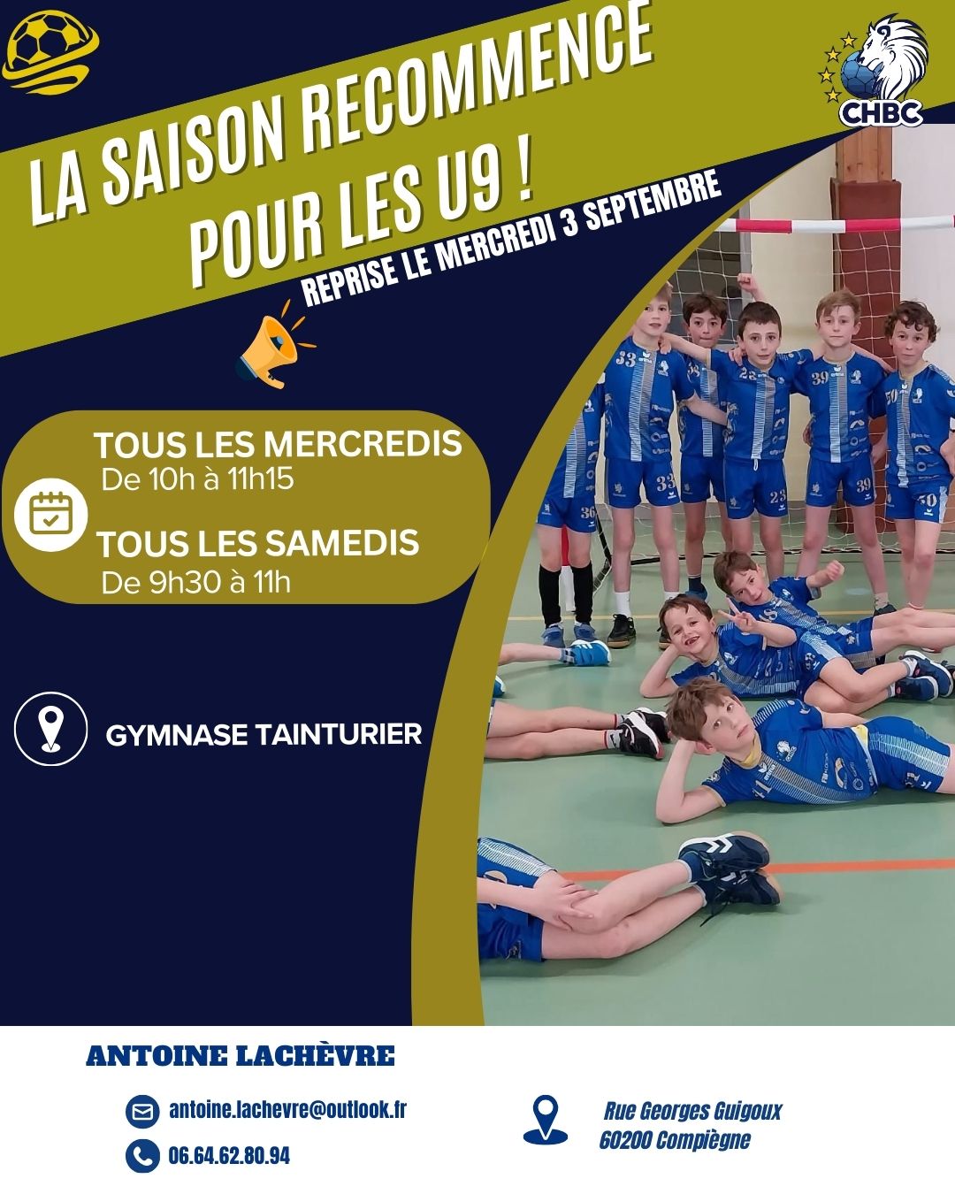 Reprise pour les U9 au CHBC mercredi 3 septembre de 10 heures à 11h15, gymnase Tainturier à Compiègne