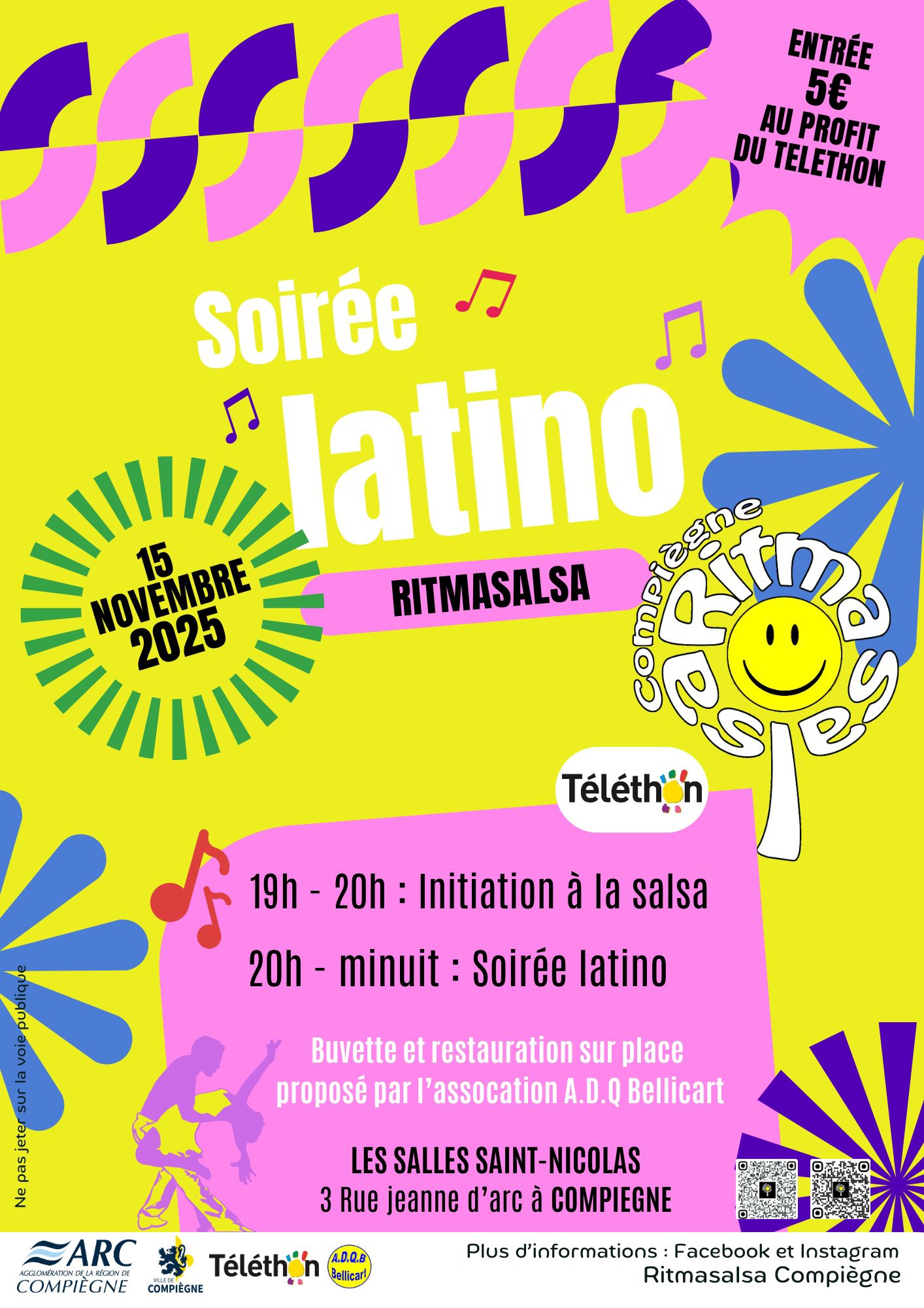 Dans le cadre du Téléthon, Ritmasalsa organise une soirée latino samedi 15 novembre, à partir de 19 heures, salles Saint-Nicolas à Compiègne