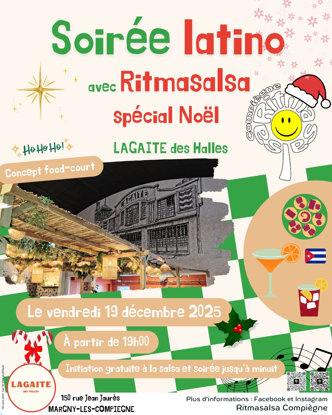 Ritmasalsa Compiègne organise une soirée latino spécial Noël vendredi 19 décembre à partir de 19 heures, à La gaité des halles, 150 rue Jean-Jaurés à Margny-lès-Compiègne