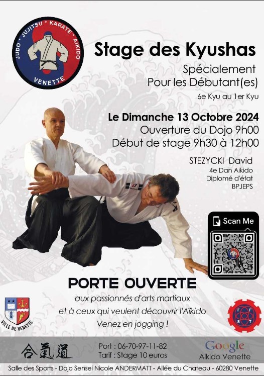 Le Judo jujitsu de Venette organise un stage d’aïkido pour les débutants dimanche 13 octobre de 9h00 à 12h00 au dojo de la maison des sports de Venette