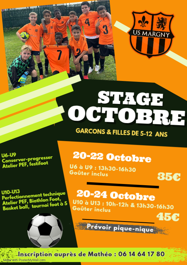 L’US Margny organise un stage du lundi 20 au vendredi 24 octobre, stade Robert-Dubois à Margny-lès-Compiègne