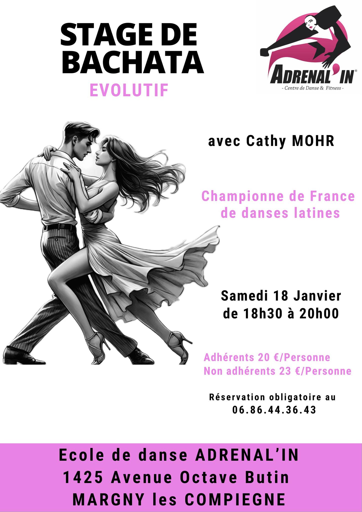 Adrenal’in organise un stage de bachata samedi 18 janvier de 18h30 à 20h00, école de danse, 1425 avenue Octave Butin à Margny-lès-Compiègne