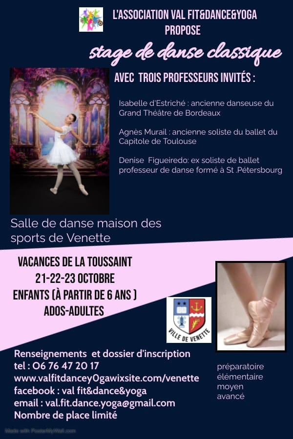 Val Fit&dance&yoga organise un stage de danse classique du lundi 21 au mercredi 23 octobre, à la maison des sports de Venette.