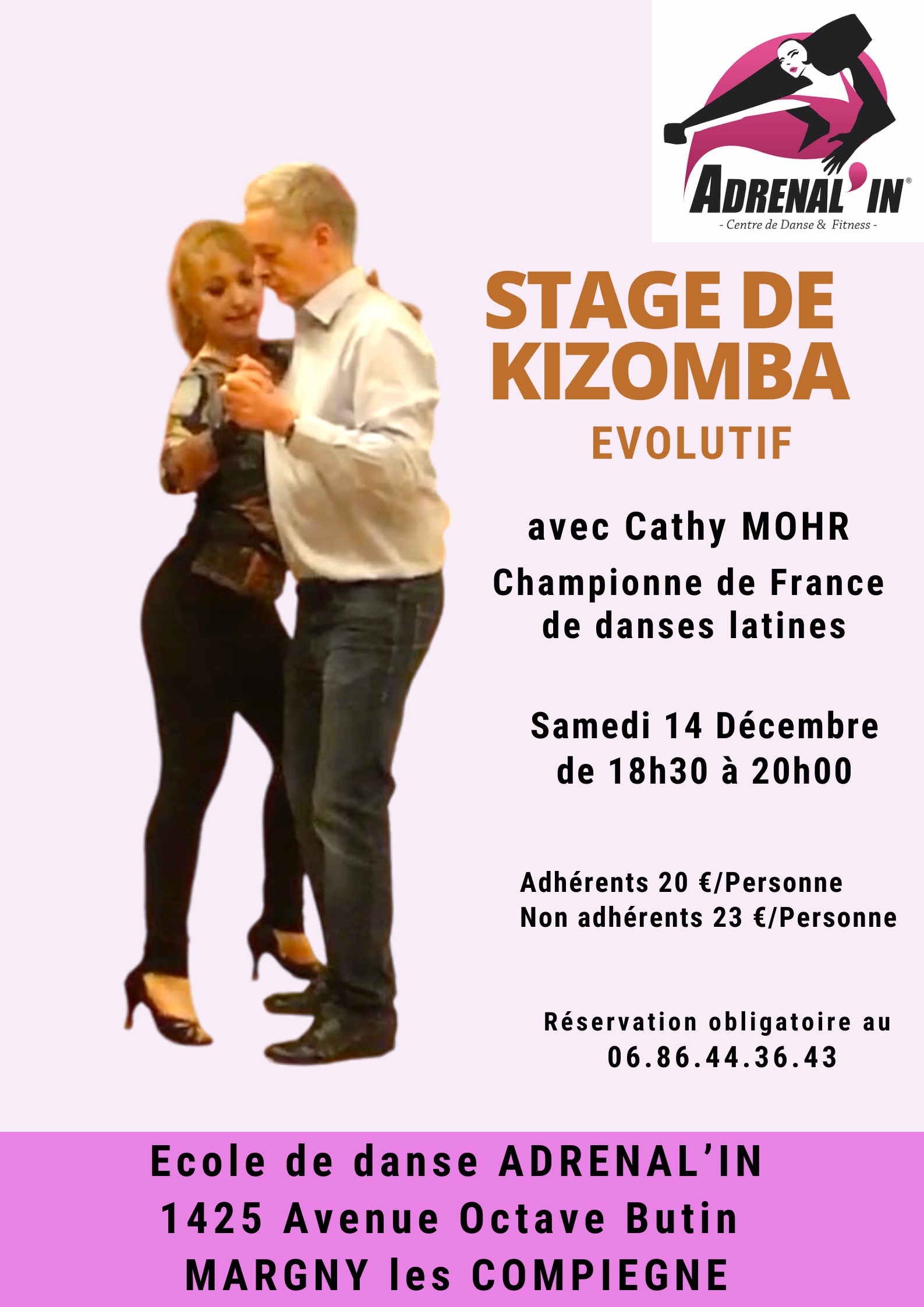 Adrenal’in organise un stage de kizomba samedi 14 décembre de 18h30 à 20h00, à l’école de danse, 1425 avenue Octave Butin à Margny-lès-Compiègne