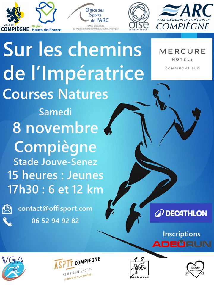 Samedi 8 novembre, l’Office des sports organise, avec le soutien de la VGA Compiègne, l’AC Margny-lès-Compiègne, l’AS Verberie, l’ASPTT Compiègne et l’AC Béthisy, la cinquième édition de la course nature Sur les chemins de l’Impératrice-Hotel Mercure, partenaire privilège de cette manifestation.
