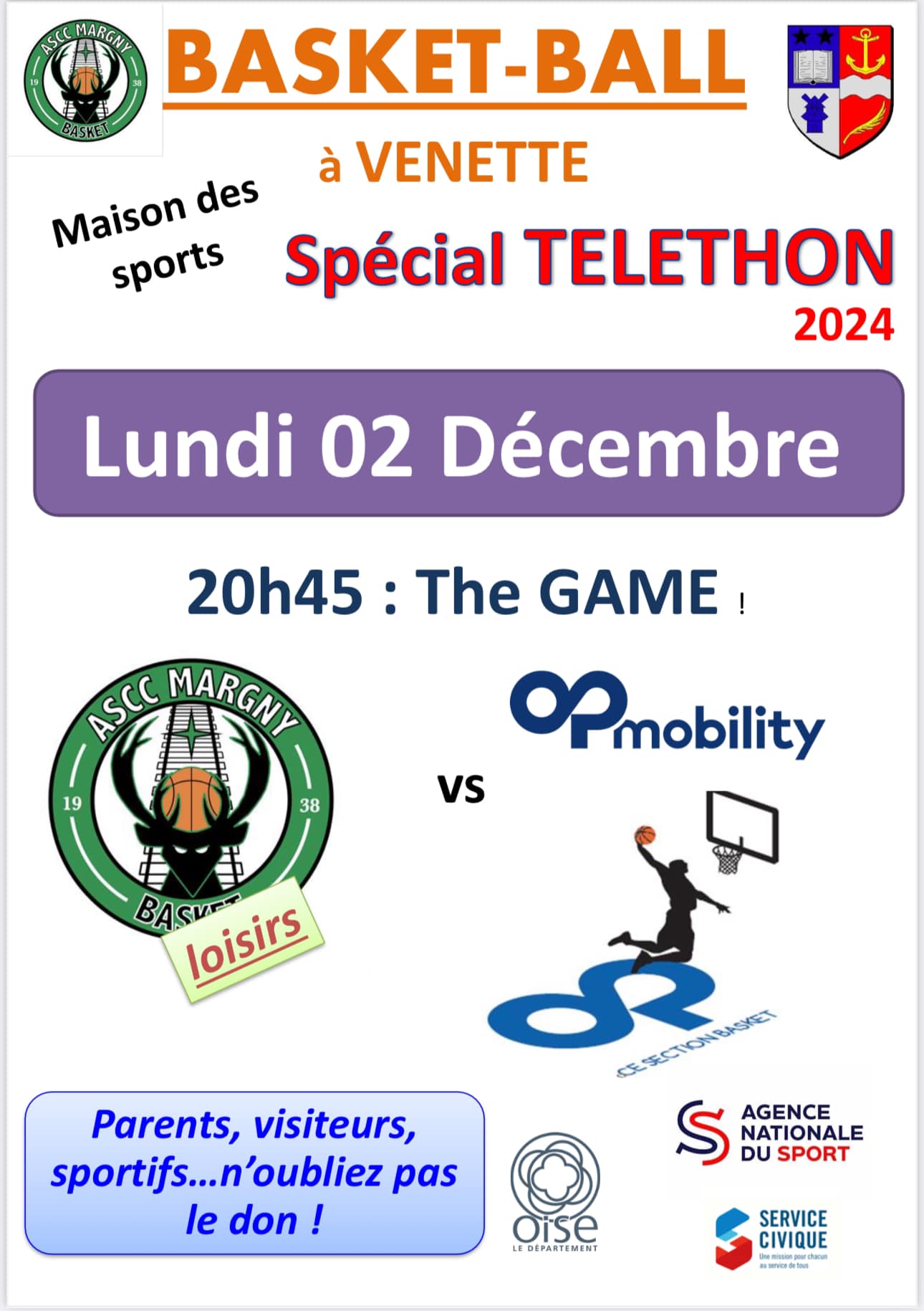 Dans le cadre du Téléthon, l’ASCC Margny organise une rencontre spécial Téléthon lundi 2 décembre à 20h45, à la maison des sports de Venette
