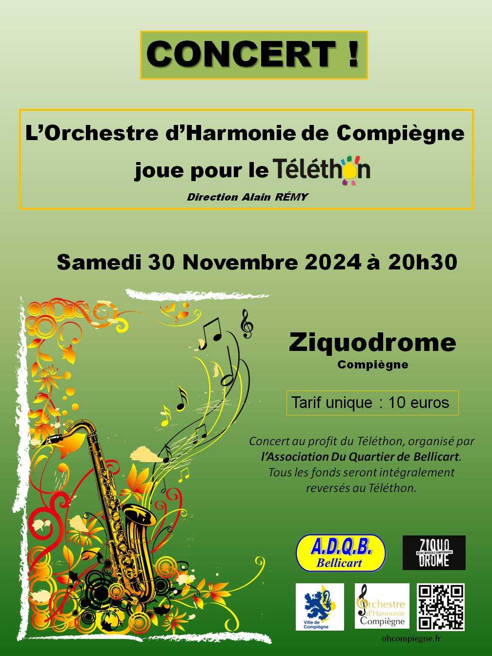 Dans le cadre du Téléthon, l’ADQB organise un concert samedi 30 novembre à 20h30, au ziquodrome à Compiègne