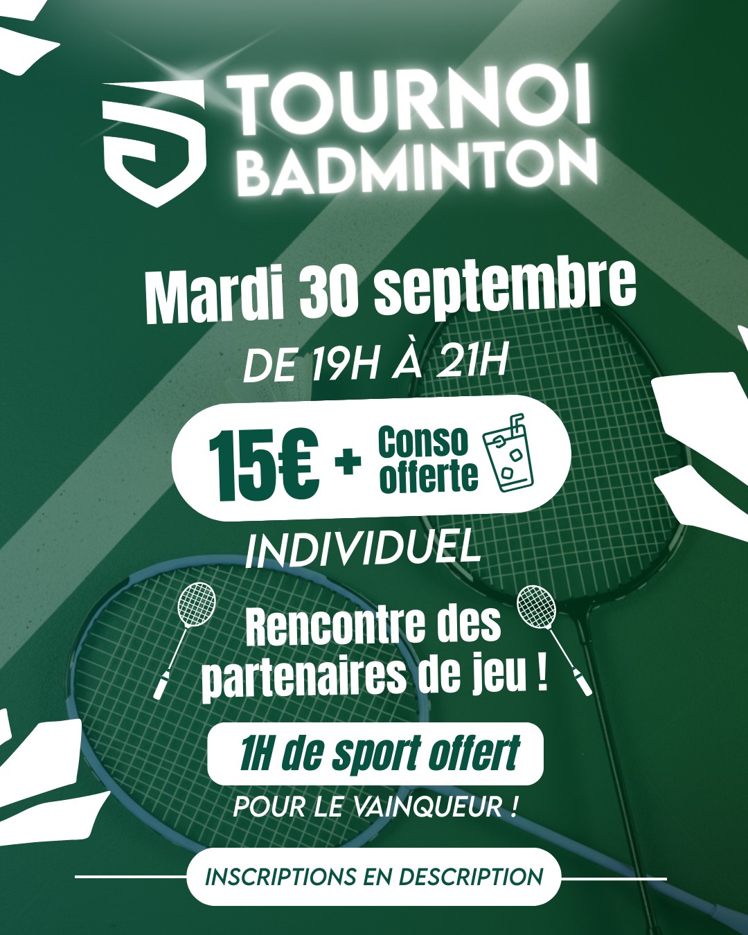Le Stadium organise un tournoi de badminton mardi 30 septembre de 19 heures à 21 heures, 43 route de Choisy à Compiègne