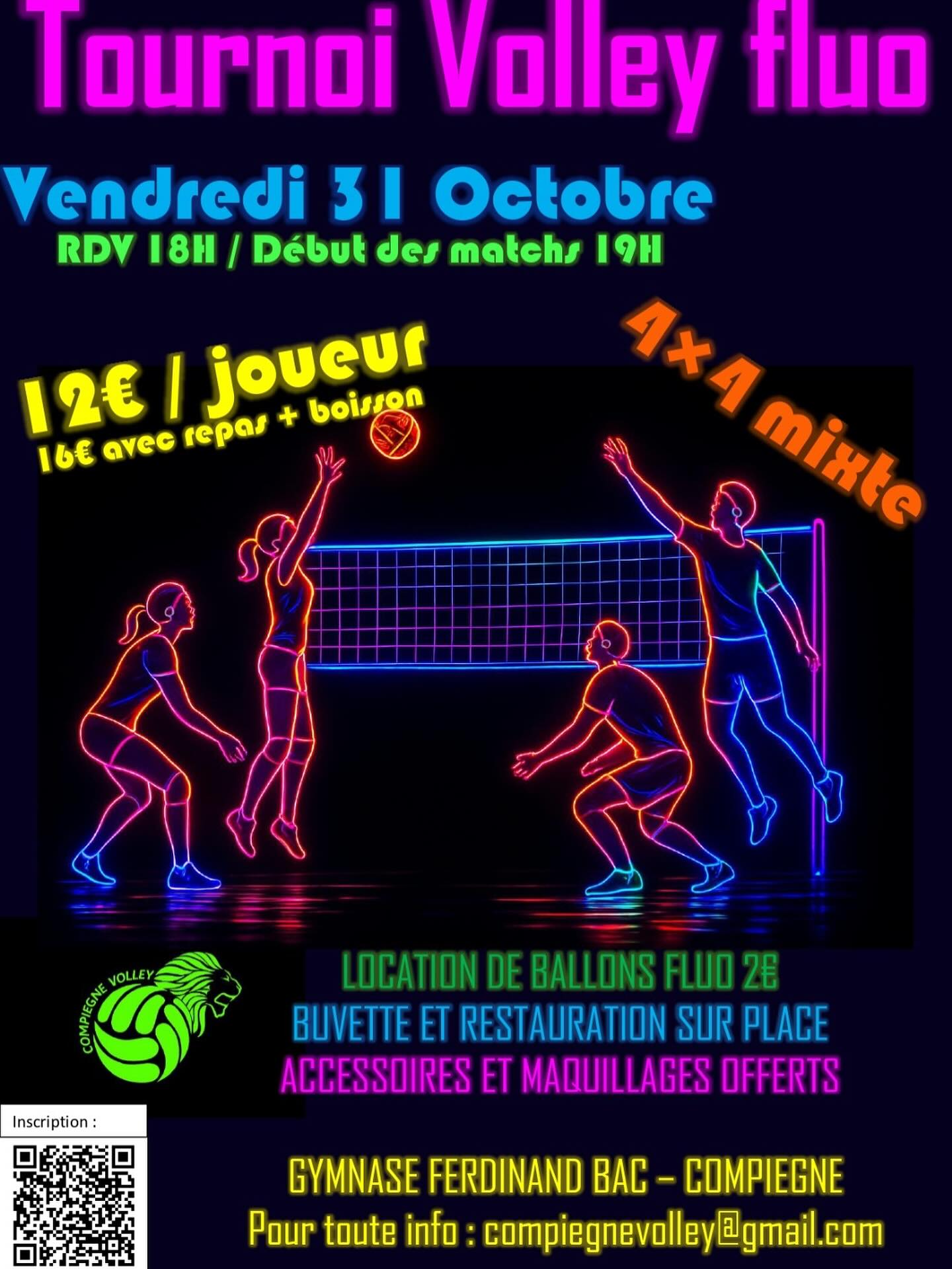 Compiègne volley organise un tournoi de volley fluo vendredi 31 octobre à 18 heures, gymnase Ferdinand-Bac à Compiègne.