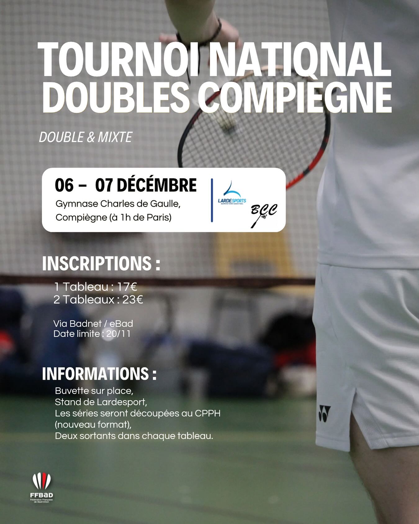 Le Badminton club compiégnois organise un tournoi national samedi 6 et dimanche 7 décembre, gymnase Charles de Gaulle à Compiègne
