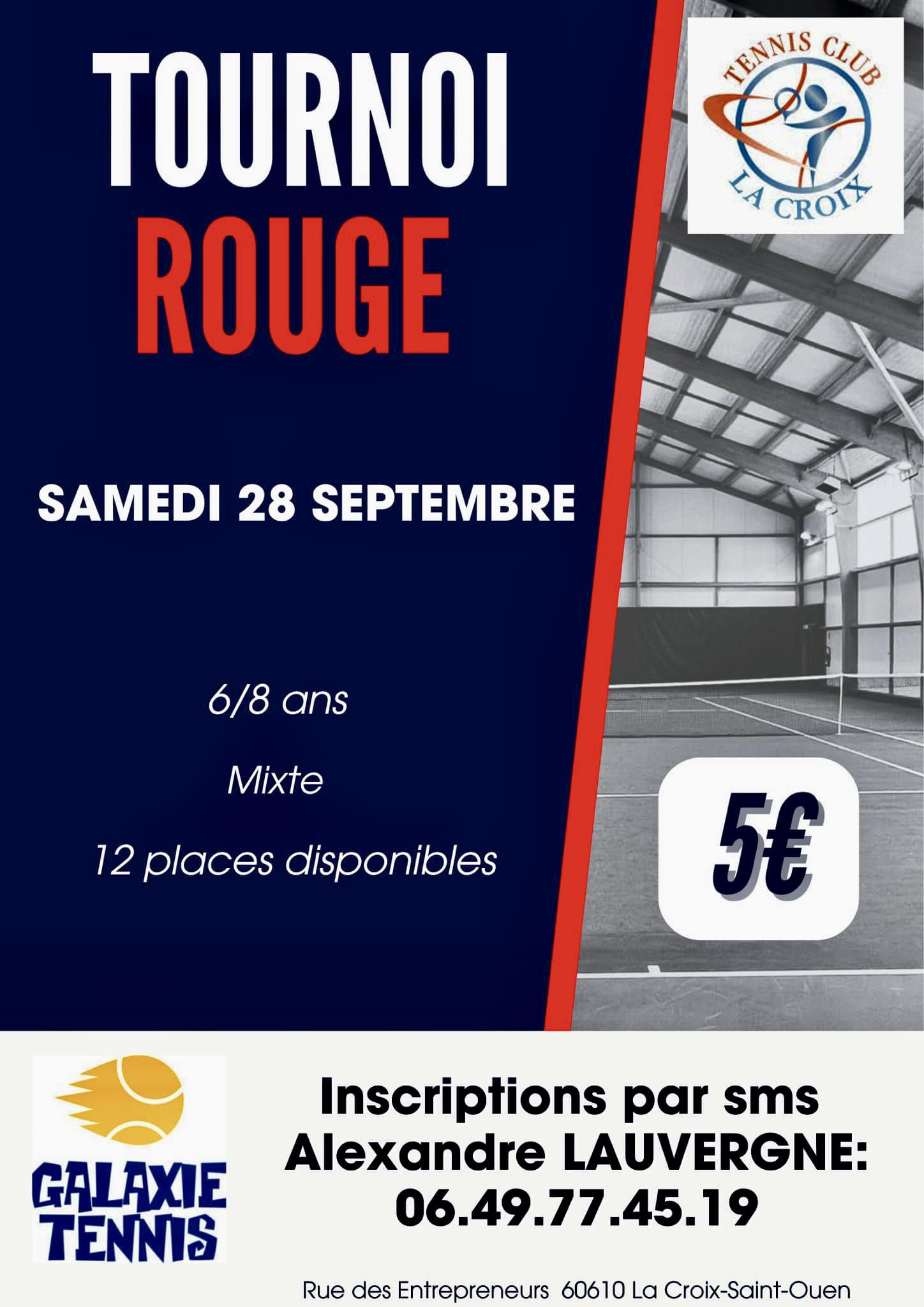 Tournoi rouge au Tennis club La Croix samedi 28 septembre, rue des entrepreneurs à La Croix Saint-Ouen