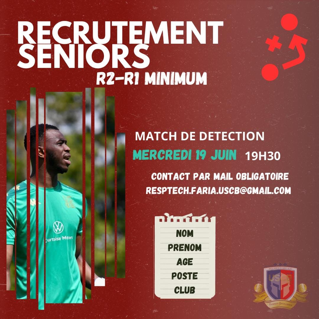 Match de détection mercredi 19 juin à 19h30, stade du maubon à Choisy-au-bac