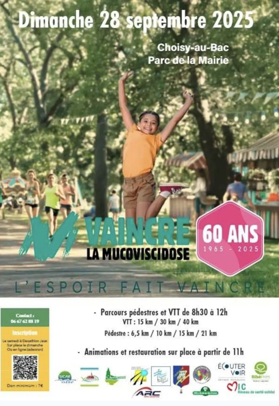 Vaincre la mucoviscidose dimanche 28 septembre de 8h30 à 12 heures, parc de la mairie de Choisy-au-Bac