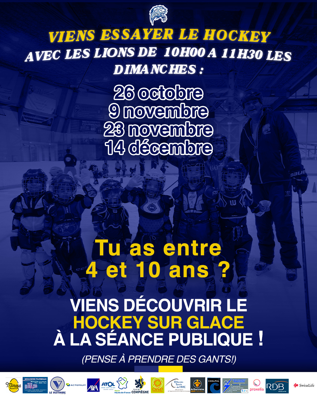 Tu as entre 4 et 10 ans, viens essayer le hockey dimanche 14 décembre de 10 heures à 11 heures à la patinoire de Compiègne, ZAC de Mercières