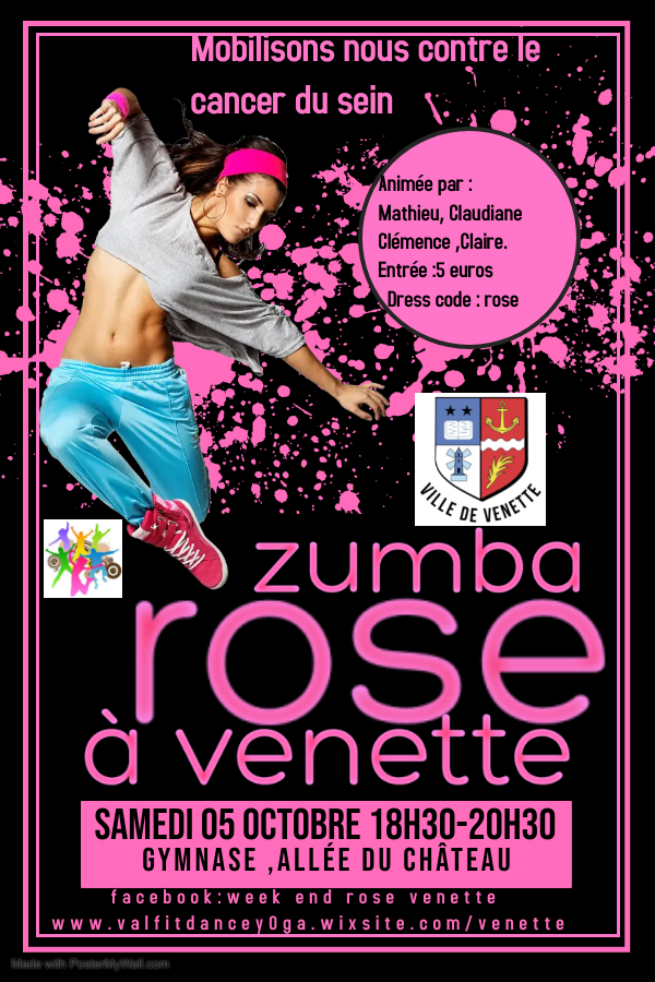 Zumba rose à Venette avec Val fit and dance and yoga de 18h30 à 20h30 à la salle des sports